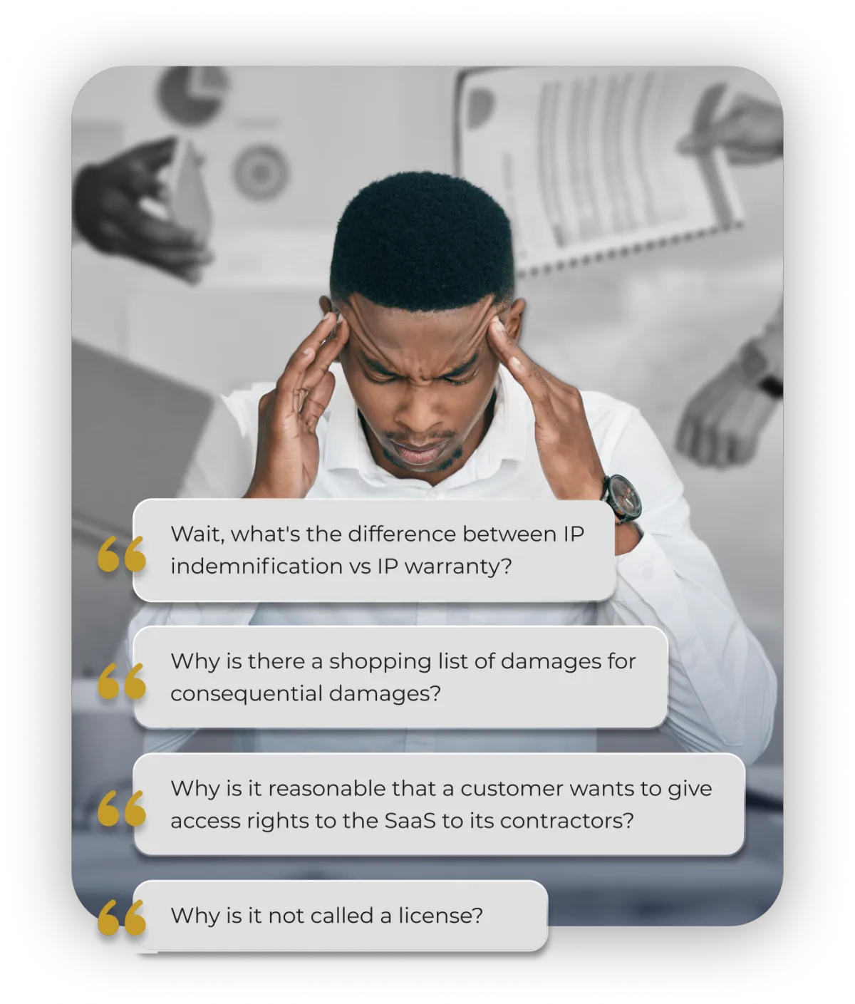 Feeling overwhelmed often stems from a lack of knowledge, not a lack of time. Staring at a contract, unsure how to proceed, leads to frustration, wasted hours, and self-doubt. Without structured training, reviewing SaaS contracts takes much longer than it should.